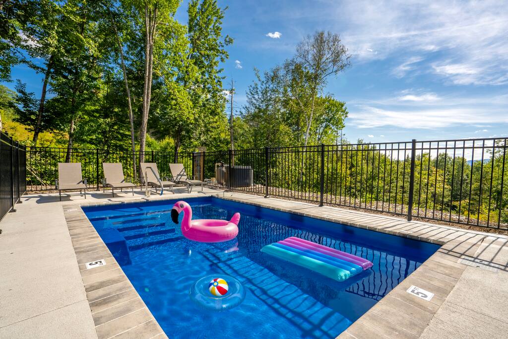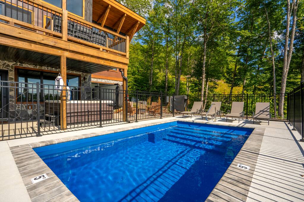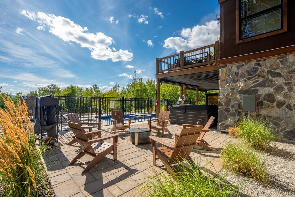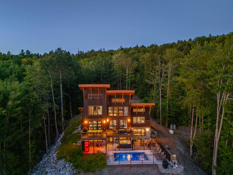 Black Cap Lodge is a brand new construction custom home with mountain views and professionally decorated with high-end finishes It is fully loaded with everything you will want from the saltwater heated pool (May-Sep), hot tub, sauna, fire pit, pool table, arcade games, wet bar, chef's kitchen, 4 king bedrooms, a loft with 2 twin beds, and a queen over queen bunk room, and a well-stocked coffee bar. If you're sick and tired of old run-down mountain homes, Black Cap Lodge will blow you away. Black Cap Lodge has been designed with you in mind as we want you to feel relaxed when you walk in the front door immediately. Tremendous attention has been paid to the textures, color palette, and placement of every little detail in the house. The layout of the house and the ski room is perfect for families to gather and to separate when needed so you can have your own space. The kids can fight it out by playing Pacman and NFL Blitz in the game room (or X-Box in the loft!) while mom and dad enjoy a nice cabernet on the back deck enjoying the mountain view. From the time you book until check out we are here to serve you and answer any questions that may arise, but we will give you your space and not bother you. Black Cap Lodge is located 8 minutes from the Bethel Village (great restaurants), 10 minutes from Mt. Abram (year-round fun – mountain biking, skiing, après ski), and 17 minutes from world-class skiing at Sunday River Resort. Main Level * Fully stocked chefs kitchen with huge island that seats four * Dining area with seating for 10 (right next to island so 14 can dine together) * Living room with stone fireplace and sliders out to the deck * Back deck with dining for 10 and comfy seating for 7+ * Powder room * Bedroom 1 (master) with King bed, TV, ensuite bathroom, and walk-in closet * Ski room with separate entrance including boot dryer for 8, cubbies, washer & dryer Upper Level * Bedroom 2 with king bed, reading nook, mountain views, and access to the loft * Loft with 2 twin beds, TV, and X-Box * Bedroom 3 with king bed and TV * Bathroom with large tile shower Lower Level * Family room with 85” TV, large sectional, and two armchairs * Game room with wet bar, pool table, two TVs, two stand-up arcade machines, and a view out to the hot tub and pool area * Bedroom 4 with king bed and TV * Bedroom 5 with a queen-over-queen bunk and TV * Bathroom with tub and shower * Patio with 7-person hot tub and infra-red sauna * 12x20 heated saltwater pool with seating